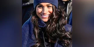 Його проілюстрували новими фотографіями Меган Маркл. На них дружина принца Гаррі одягнена в темно-синій лук: дуту теплу куртку, шапку спортивного типу і теплий шарф. Насичений колір одягу разом із природним освітленням (знімки з Меган робили на вулиці) вигідно підкреслив оновлений колір волосся герцогині Сассекської.