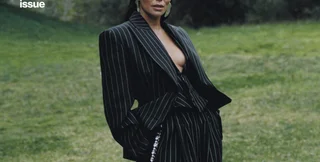 На першій сторінці глянцевого журналу акторка, яка народилася в Техасі і яка щойно приєдналася до акторського складу фільму "Вбивства в одній будівлі", позувала на вулиці в елегантному чорному костюмі в смужку. Він складався з широких штанів, жакета і жилета з глибоким вирізом, під який вона не стала надягати бюстгальтер.