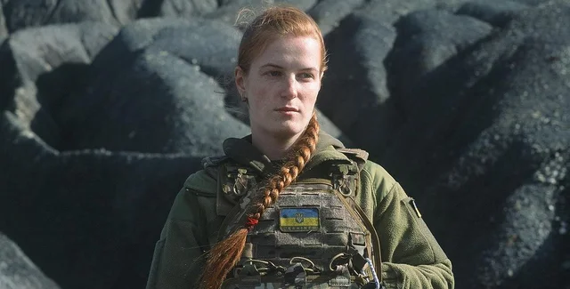 Для digital-обкладинки сфотографували військовослужбовицю ЗСУ. Кулеметниця Оксана Рубаняк із позивним "Ксена" позувала у військовій формі та без шолома, її руде волосся було заплетене в косу.