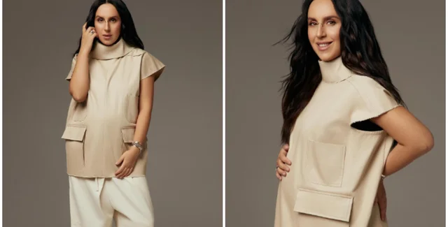 Зокрема, на фото співачка позує в одязі від українського дизайнера бренду Litkovska. Мова йде про костюм бежевого кольору вільного крою.