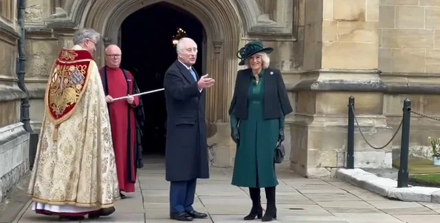 У каплицю, де покояться його мати, королева Єлизавета II, і батько, герцог Единбурзький, Його Величність приїхав на авто. Він мав елегантний вигляд у темному пальто, темно-синьому костюмі та блакитній краватці. Король помахав присутнім рукою, перш ніж зайти всередину храму.