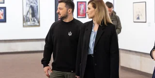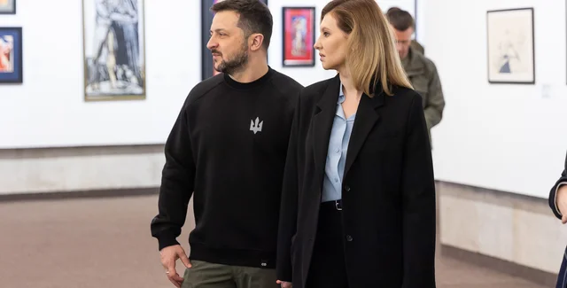 Володимир та Олена Зеленські побували на виставці, на якій Перша леді постійно тримала Президента України за руку.