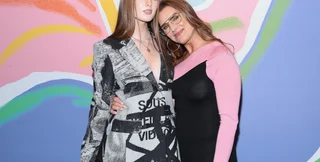 Її донька, 17-річна модель, продемонструвала свій еклектичний смак у чорно-білому костюмі з графічним принтом. Молода красуня була в чорних туфлях на високих підборах. Вона розпустила своє рудувато-каштанове волосся і нанесла легкий макіяж. Як і її мати, Хенчі вибрала непомітні аксесуари: простий золотий ланцюжок з медальйоном. У руці в неї була сумочка квадратної форми кмедного кольору.