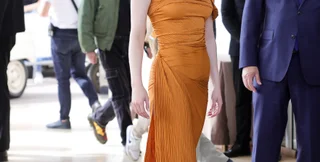 28-річна кінозірка була помічена в аеропорту Ніцци в шикарній сукні міді без бретелей гірчичного кольору з глибоким розрізом до стегна. Аня одягла величезний солом'яний капелюх, щоб захиститися від сонця.