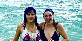 Також дружина французького мільярдера Франсуа-Анрі Піно у воді позувала зі своєю подругою Самантою.