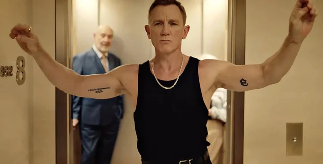 56-річний англійський актор Деніел Крейг, який прославився на весь світ роллю суперагента 007, з'явився в несподівано новому образі на фото Netflix до фільму "Дістати ножі: Прокинься, мерцю".