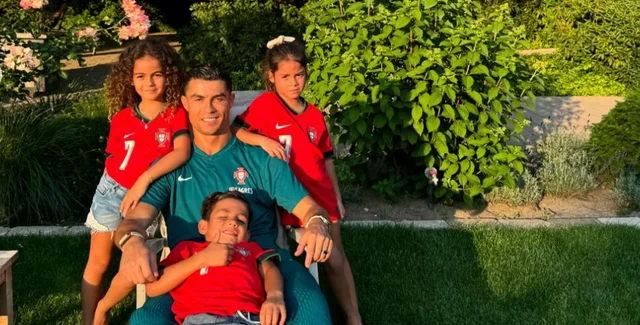 На фото зʼявився 39-річний португальський футболіст Кріштіану Роналду, позуючи зі своїми дітьми. Зокрема, до зіркового батька приєдналися семирічні близнюки Єва та Матео, а також шестирічна донька від Джорджини Алана Мартіна.