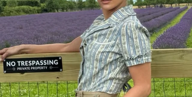 Для поїздки артистка обрала смугасту блузку з коротким рукавом, поєднавши її з коричневими штанами з високою талією і шльопанцями. Вона зібрала свої темні локони у хвіст, прикривши голову солом'яним капелюхом, і завершила ансамбль золотими сережками-кільцями.
