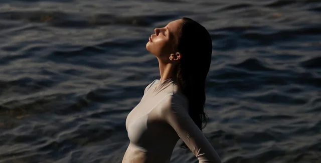 На фото донька Ігоря Суркіса позувала на пляжі в довгій напівпрозорій сукні, демонструючи свій помітно округлений живіт.