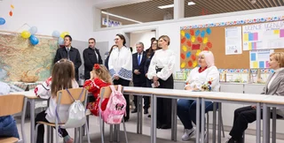 Так у межах програми Олена Зеленська відвідала суботню школу для дітей, яка функціонує в столиці Словенії Любляні. Там вона зустрілася з учителями, учнями української суботньої школи та вимушеними переселенцями з України.