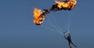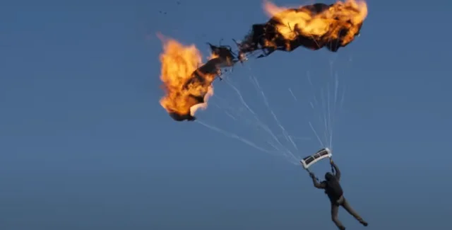 У ньому він каже: "Я буду стрибати. Якщо парашут закрутиться під час горіння — мене буде крутити і обпалювати".