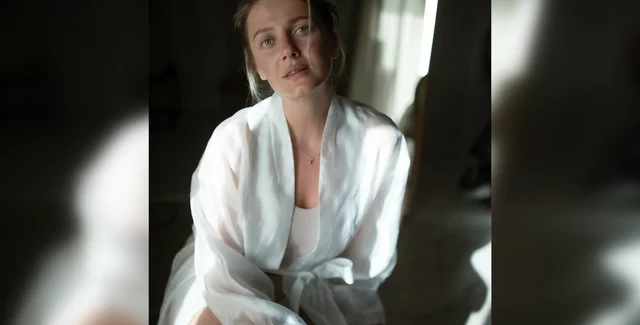 Також на фото можна побачити передвесільний образ KOLA. Для часу підготовки нареченої вона обрала білий халат та, ймовірно, білій боді.