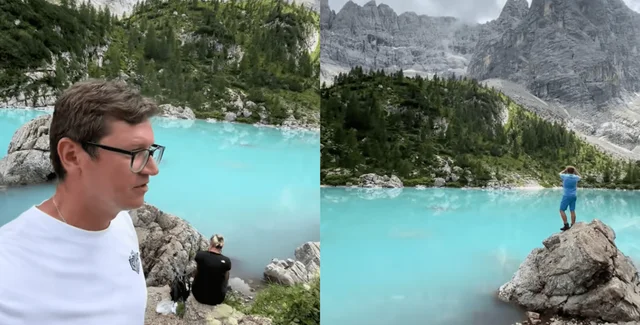 "Найкрасивіше озеро Доломітових Альп — це озеро Сорапіс. Це південний Тироль. Сюди піднятися дві години. Шлях не дуже простий, але і не легкий. Нічого спеціального обладнання не потребує, але піднімаєшся і бачиш ось такий краєвид. Це реально найкрасивіше озеро. Просто з неймовірним кольором. Це не фільтри. Це реальний колір цієї води цього озера. Подивіться, які краєвиди", — сказав автор відео.