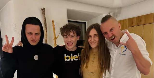 "Це переможці Євробачення Nemo. Свій європейський тур вони починають сьогодні з Києва. А вчора були в @100rokivtomuvpered, їли борщ і я їм пояснював, як слідкувати за дронами і ракетами в додатках. Це їхній перший раз в Україні, але вони не злякались і приїхали і пережили цю ніч з нами. Дякую за крутий приклад підтримки", — написав Клопотенко та показав фото з музикантами.