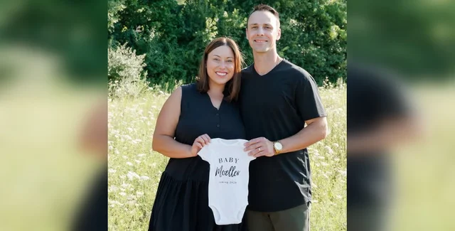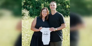 На першій світлині Алайна та її чоловік Метт Моллер стояли посеред поля, тримаючи маленький дитячий комбінезон і щасливо усміхаючись.