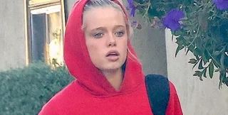 Попри те, що дівчина накинула на голову капюшон, було добре видно, що вона продовжує експериментувати зі своєю зовнішністю. Нещодавно підлітка висвітлила волосся, а тепер її образ доповнює помітний пірсинг на нижній губі.