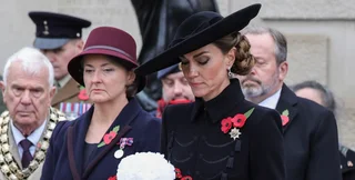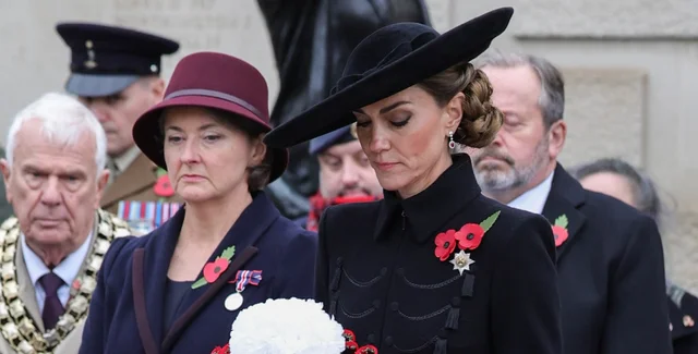 Однак, уже наступного дня, для іншої церемонії до Дня памʼяті, дружина принца Вільяма повернулася до більш традиційної зачіски. Одягнувши чорне облягаюче пальто та капелюх з широкими крисами, вона продемонструвала вишуканий пучок, укладений набік.