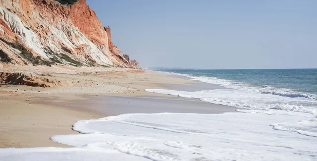 Алгарве славиться понад 150 пляжами, серед найпопулярніших — довгий червонокручий Praia da Falésia та мальовнича Praia da Marinha.