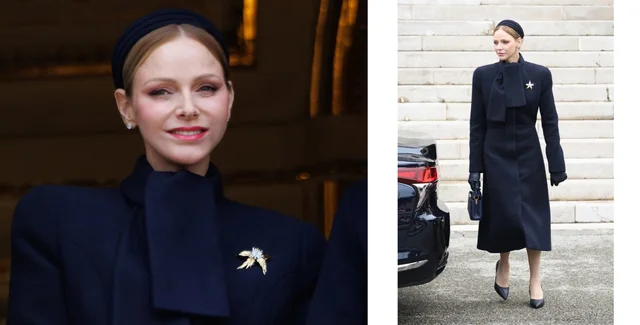 Княгиня Шарлен привернула увагу стильним образом під час офіційної церемонії Сент-Девоти, що відбулася 27 січня в Монако. Для урочистого виходу княгиня обрала модну сукню-пальто з темно-синьої вовни, яка стала головним акцентом її образу.