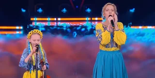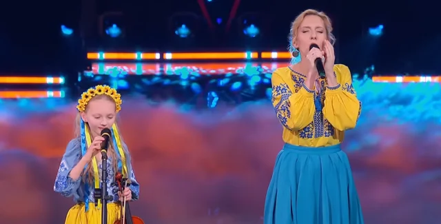 Зіркова мама і донька вийшли на сцену у традиційних українських костюмах у жовто-синіх відтінках. Відео виступу шириться в мережі.