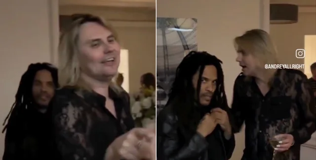 Зокрема, Андрій-молодший опублікував кадри із закритої вечірки. На відео видно, як Сергій спілкується з Кравіцем, а сам автор допису іронічно підписує ролик: "а хто це у нас в гостях". У відповідь співак кидає у камеру різкий, неоднозначний погляд.