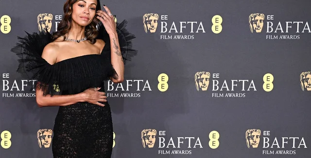 46-річна Зої Салдана, яка отримала премію BAFTA за найкращу жіночу роль другого плану у фільмі "Емілія Перес", була одягнена в чорну прозору мереживну сукню від Saint Laurent, створену Петрою Фленнері. Вбрання вирізнялося драматичним тюлевим коміром, який розходився віялом, відкриваючи її декольте. Французький лейбл був співпродюсером фільму "Емілія Перес", і багато костюмів для фільму були взяті з архівів креативного директора Ентоні Ваккарелло.