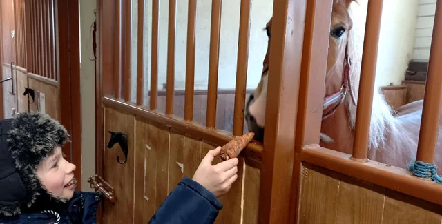 Коні обережно брали з рук моркву чи яблука, поглядаючи на всіх нас лагідними очима. Їхні великі очі, обрамлені довгими віями, світилися розумінням і любов'ю. Мої сини, які годують цих чудових істот, давно так голосно не сміялися.