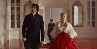 Червоний шовковий плащ, на тлі снігу і чорних зимових дерев, зелений оксамит у монохромних інтер'єрах маєтку, сцени трапез у саду — вся ця куртуазна естетика сміливо може претендувати на новий сезон серіалу "Корона" або з лишком його переплюнути.