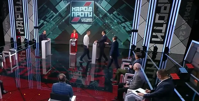 Після цих слів Бутусов встав зі свого місця і підійшов до Мураєва практично впритул, через що той відсахнувся. Нардеп минулого скликання розвернувся і почав йти, а журналіст намагався схопити його за руку. Після цього обидва вони покинули студію, віддалившись за лаштунки. Їх намагалися заспокоїти заспокоїти інші присутні в студії.