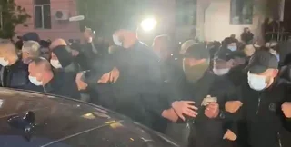 Натовп намагався перекрити дорогу автомобілю політика, через що деяких довелося відтісняти силою.