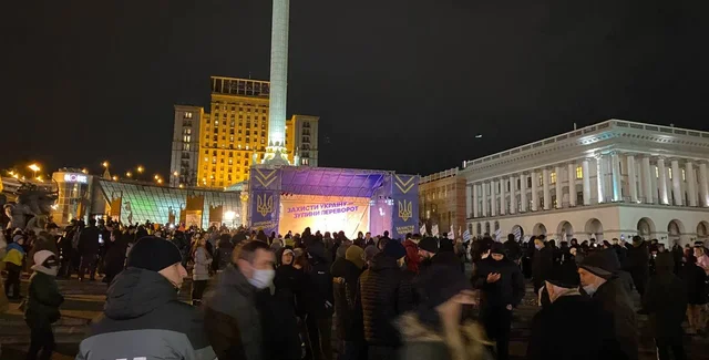 У центрі Києві через це сьогодні перекрили десять вулиць та змінили схему руху громадського транспорту. Протестувальники на Майдані після закінчення акції пішли до Офісу президента України, біля якого комунальники зводили майданчик для льодової ковзанки.