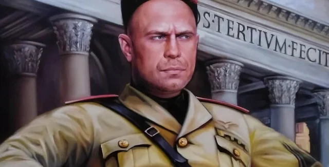 Беніто Муссоліні — італійський політичний діяч, творець Національної фашистської партії, керівник Королівства Італія з 1922 до 1943 року. Союзник Адольфа Гітлера за часів Другої світової війни. Беніто Муссоліні був відправлений у відставку та заарештований у 1943 році. У 1945 році "Дуче" та його кохану Клару Петаччі стратили.