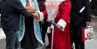 При цьому народний депутат одягнувся в костюм Діда Мороза, а в руках у нього була хлопавка. Поруч з ним була дівчина, яка вбралася Снігуронькою. Інші члени ОПЗЖ одягли маски тварин, взявши із собою пакет, у якому, ймовірно, був подарунок. На фото можна побачити, як Медведчук зустрічає своїх колег у дворі.