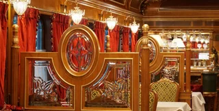 Всередині вагона багато позолоти, червоного оксамиту та білих скатертин. Це більше схоже на музей, ніж на вагон.