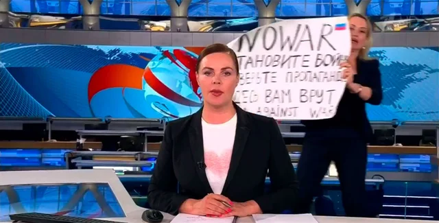 14 березня російська журналістка Марина Овсяннікова з'явилася в ефірі "1 каналу" з антивоєнним плакатом. Кореспондентка закликала зупинити повномасштабну війну в Україні, після чого її доставили до відділення поліції.
