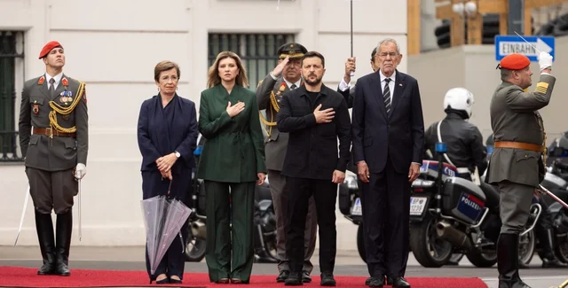 Президент Австрії Ван дер Беллен приймав подружжя Зеленських у палаці Гофсбург близько 13:00. Зеленські прибули до центру Відня у супроводі австрійських спецпідрозділів WEGA та Cobra. Журналісти видання Heute звернули увагу, що український лідер під час візиту "припустився помилки".
