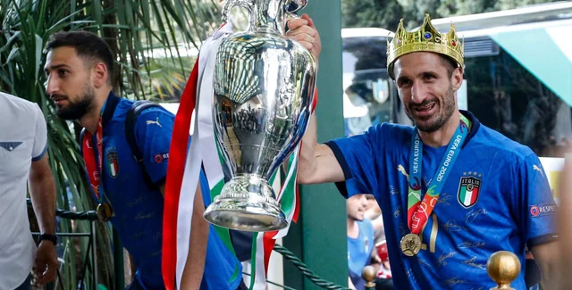 Уболівальники наділи капітану збірної Італії Джорджо Кʼєлліні корону на голову.