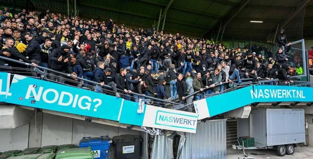 У матчі 9-го туру голландської Ередевізіі між клубом з Неймегена "НЕК" і арнемським "Вітессом" вболівальники обвалили трибуну. Відео події опублікував Twitter-канал ESPN FC.