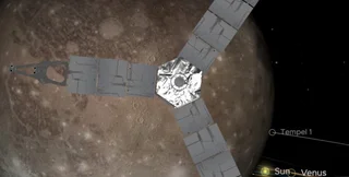 Найвіддаленіший від Землі космічний апарат, що працює на сонячній енергії, підлетить до супутника Європа на відстань 320 кілометрів 29 вересня 2022 року, а потім двічі пролетить повз вулканічний супутник Іо на відстані 1 500 км 30 грудня 2023 року та 3 лютого 2024 року.