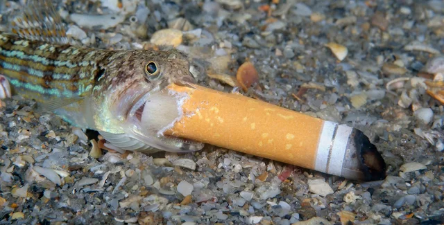 Одне з таких зображень було представлено в цьому році на церемонії вручення премії Ocean Photography Awards (на якій було показано кілька незвичайних робіт). Фотограф Стівен Ковач зробив фотографію риби, яка з цікавістю жує недопалок.