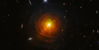 Помаранчево-червона павутина на фото — це пилові хмари чорного вуглецю, які огортають зірку, що вмирає. Вони створені із зовнішніх шарів CW Лева, викинутих у космос, повідомляє phys.org.