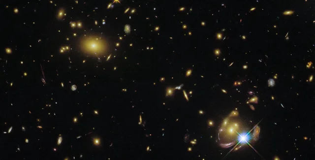 Гравітаційне лінзування відбувається, коли величезна кількість матерії, наприклад, скупчення галактик, створює гравітаційне поле, яке спотворює та посилює світло від далеких галактик.