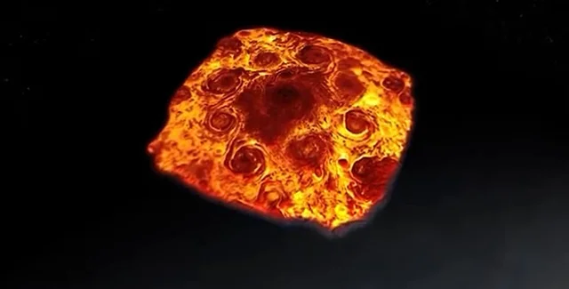 На своїй офіційній сторінці в Instagram американське космічне агентство опублікувало відео, на якому зображено Північний полюс Юпітера. А ще там видно щільну концентрацію атмосферних ураганів червоного та жовтого кольору, які дуже нагадують піцу.