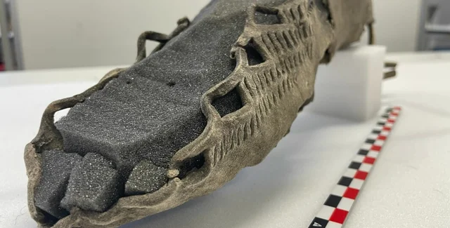 Проте сандаля була не єдиним предметом, знайденим експертами. Вони також натрапили на кінський гній, тканини, корм з листя, держаки стріл та інші предмети.
