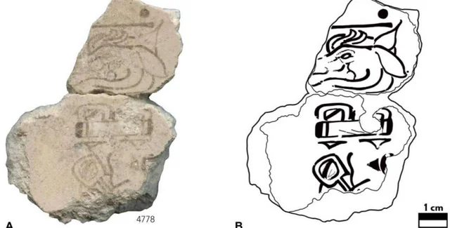 "Її форма вказує на те, що це запис дати в мезоамериканському 260-денному календарі "7 оленів". Голова перебуває у вихідному положенні, можливо, як частина підпису до супровідної сцени або нині втраченої людської фігури", — пише професор Девід Стюарт із Техаського університету в Остіні.