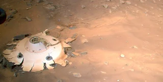 Вертоліт Ingenuity сфотографував парашут діаметром 21,5 м, а також залишки захисного корпусу, який зберіг марсохід і його "напарника" від високих температур і тиску в атмосфері Марса.