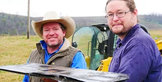Джордан Гоббс і Бред Такер демонструють знайдений уламок космічного корабля Crew Dragon