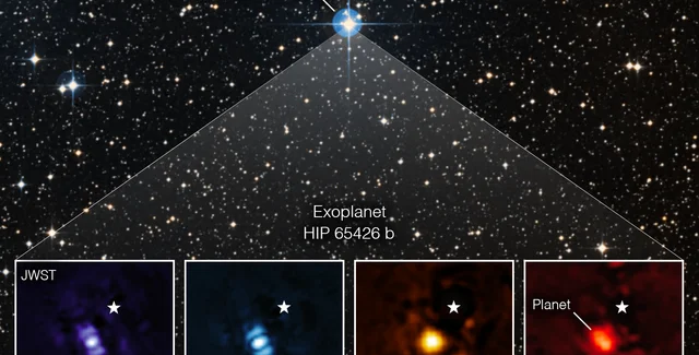 Космічний телескоп Вебба вперше зробив прямий знімок планети, що розташована поза Сонячною системою. Ця планета обертається навколо зірки HIP 65426 у сузір'ї Центавр на відстані 385 світлових років від нас. Планету під назвою HIP 65426 b відкрили ще у 2017 році, але вперше вчені отримали настільки деталізоване зображення екзопланети, пише The Guardian.