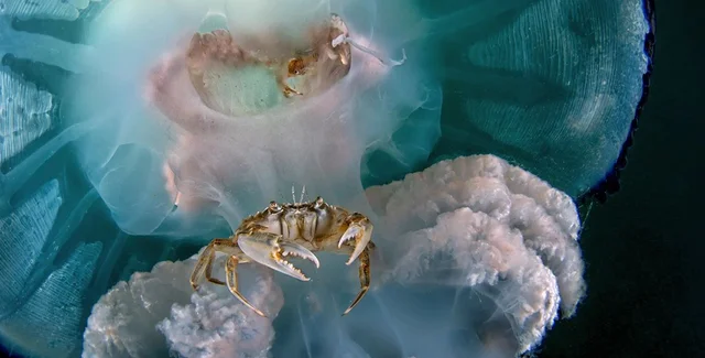 У цій категорії переміг знімок Сальваторе Ланніелло, якому вдалося зобразити незвичайну подорож краба верхи на медузі.