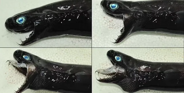 Довге чорне тіло, зубаста паща та очі-намистинки — вкрай рідкісна глибоководна акула знову лякає людей.